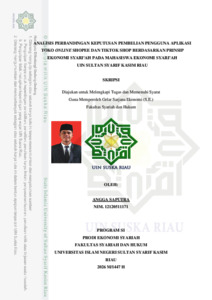 ANGGA SAPUTRA, - (2026) ANALISIS PERBANDINGAN KEPUTUSAN PEMBELIAN PENGGUNA APLIKASI TOKO ONLINE SHOPEE DAN TIKTOK SHOP BERDASARKAN PRINSIP EKONOMI SYARI'AH PADA MAHASISWA EKONOMI SYARI’AH UIN SULTAN SYARIF KASIM RIAU. Skripsi thesis, UNIVERSITAS ISLAM NEGERI SULTAN SYARIF KASIM RIAU.