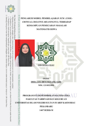 ABSTRAK Dhea Ayu Devi Mayang Sari (2025) : Pengaruh Model Pembelajaran 3CM (cool-critical-creative-meaningful) Terhadap Kemampuan Pemecahan Masalah Matematis Siswa Penelitian ini bertujuan untuk mendeskripsikan pengaruh model pembelajaran 3CM terhadap kemampuan pemecahan masalah matematis siswa. Metode pada penelitian ini adalah eksperimen semu (quasi eksperimen) dengan non-equivalent posttest-only control group design. Penelitian ini dilaksanakan di SMP Negeri 2 Siak dengan sampel kelas VIII.2 sebagai kelompok eksperimen dan kelas VIII.3 sebagai kelompok kontrol. Teknik sampling yang digunakan adalah purposive sampling. Teknik pengumpulan data penelitian ini adalah teknik observasi, teknik tes, dan teknik dokumenter. Instrumen yang digunakan dalam penelitian ini meliputi lembar observasi kegiatan guru dan siswa serta soal posttest. Teknik analisis data dalam penelitian ini menggunakan uji-t. Hasil penelitian menunjukkan bahwa perbedaan rata-rata menggunakan uji-t kelompok eksperimen lebih baik dibandingkan kelompok kontrol. Sehingga dapat disimpulkan bahwa terdapat pengaruh kemampuan pemecahan masalah matematis antara siswa yang menggunakan model pembelajaran 3CM (cool-critical-creativemeaningful) dengan siswa yang menggunakan pembelajaran konvensional. Model pembelajaran 3CM berdampak positif terhadap kemampuan pemecahan masalah matematis. Model pembelajaran 3CM dapat dijadikan salah satu alternatif untuk meningkatkan kemampuan pemecahan masalah matematis siswa pada materi persamaan dan pertidaksasmaan linear satu variabel. Kata Kunci : Model Pembelajaran, 3CM (cool-critical-creative-meaningful), Kemampuan Pemecahan Masalah Matematis.