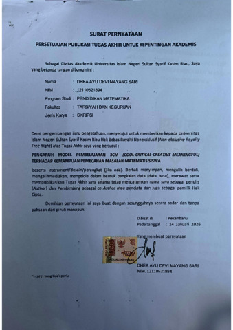 DHEA AYU DEVI MAYANG SARI, - (2026) PENGARUH MODEL PEMBELAJARAN 3CM (COOL-CRITICAL-CREATIVE-MEANINGFUL) TERHADAP KEMAMPUAN PEMECAHAN MASALAH MATEMATIS SISWA. Skripsi thesis, UNIVERSITAS ISLAM NEGERI SULTAN SYARIF KASIM RIAU.
