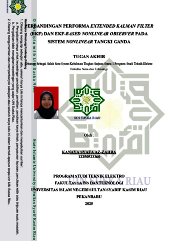 KANAYA SYAFA AZ-ZAHRA (2026) PERBANDINGAN PERFORMA EXTENDED KALMAN FILTER (EKF) DAN EKF-BASED NONLINEAR OBSERVER PADA SISTEM NONLINEAR TANGKI GANDA. Skripsi thesis, Universitas Islam Negeri Sultan Syarif Kasim.
