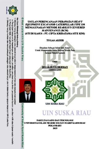 DIO ALIEF SUHERMAN, - (2026) USULAN PERENCANAAN PERAWATAN HEAVY EQUIPMENT EXCAVATOR CATERPILLAR TYPE 330 MENGGUNAKAN METODE REABILITY CENTERED MAINTENANCE (RCM) (STUDI KASUS : PT. CIPTA KRIDATAMA SITE KIM). Skripsi thesis, Universitas Islam Negeri Sultan Syarif Kasim Riau.