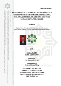 HAZARUDIN, - (2026) PERSEPSI REMAJA MASJID AL-MUNADZIRIN TERHADAP NILAI-NILAI MODERASI BERAGAMA DI JL. SWAKARYA KEL. TUAH KARYA KEC. TUAH MADANI KOTA PEKANBARU. Skripsi thesis, UNIVERSITAS ISLAM NEGERI SULTAN SYARIF KASIM RIAU.