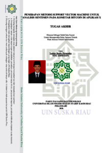 Abstrak−Media sosial menjadi sarana utama bagi pengguna dalam menyampaikan opini, termasuk terhadap Bitcoin yang memiliki nilai fluktuatif dan memicu beragam tanggapan. Banyaknya komentar yang tidak terstruktur menyebabkan analisis sentimen secara manual menjadi tidak efisien, sehingga diperlukan pendekatan otomatis berbasis machine learning. Penelitian ini bertujuan mengklasifikasikan sentimen positif dan negatif pada komentar Bitcoin di platform X menggunakan algoritma Support Vector Machine (SVM) dengan pembobotan fitur Term Frequency–Inverse Document Frequency (TF-IDF). Dataset yang digunakan terdiri dari 1.750 komentar berbahasa Indonesia yang dilabeli oleh tiga anotator. Data diproses melalui tahapan case folding, pembersihan teks, tokenisasi, stopword removal, dan stemming. Pengujian dilakukan menggunakan empat rasio pembagian data, yaitu 90:10, 80:20, 70:30, dan 60:40. Hasil penelitian menunjukkan bahwa rasio 90:10 menghasilkan performa terbaik dengan akurasi 72,57%, precision 0,75, recall 0,73, dan F1-score 0,67. Model SVM menunjukkan kinerja yang baik dalam mengidentifikasi sentimen positif, namun kurang optimal dalam mendeteksi sentimen negatif akibat ketidakseimbangan distribusi data. Sebagai percobaan tambahan, dilakukan pengujian menggunakan dataset seimbang hasil proses undersampling serta beberapa jenis kernel SVM sebagai pembanding. Hasil percobaan tambahan menunjukkan bahwa penggunaan dataset seimbang menghasilkan klasifikasi yang lebih merata antar kelas, sementara kernel linear memberikan kinerja yang paling stabil dibandingkan kernel lainnya. Secara keseluruhan, SVM dengan pembobotan TF-IDF terbukti efektif untuk analisis sentimen komentar Bitcoin di media sosial. Kata Kunci: Analisis Sentimen; Term Frequency-Inverse Document Frequency; Bitcoin; Support Vector Machine; Platform X
