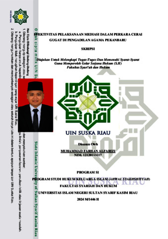 MUHAMMAD FARHAN ALFARIZI, - (2026) EFEKTIVITAS PELAKSANAAN MEDIASI DALAM PERKARA CERAI GUGAT DI PENGADILAN AGAMA PEKANBARU. Skripsi thesis, Universitas Islam Negeri Sultan Syarif Kasim Riau.