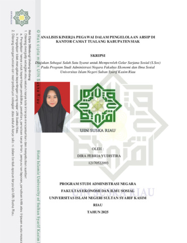 DIRA FEBRIA YUDISTIRA (2026) ANALISIS KINERJA PEGAWAI DALAM PENGELOLAAN ARSIP DI KANTOR CAMAT TUALANG KABUPATEN SIAK. Skripsi thesis, Universitas Islam Negeri Sultan Syarif Kasim.