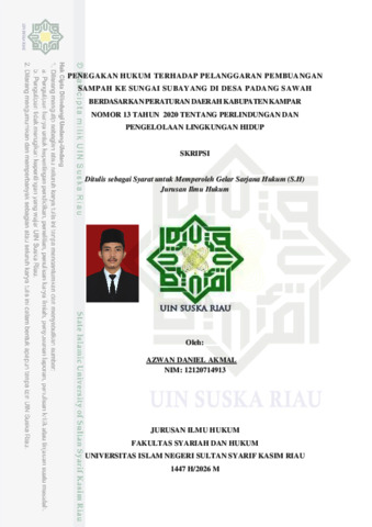 AZWAN DANIEL AKMAL, - (2026) PENEGAKAN HUKUM TERHADAP PELANGGARAN PEMBUANGAN SAMPAH KE SUNGAI SUBAYANG DI DESA PADANG SAWAH BERDASARKANPERATURAN DAERAH KABUPATEN KAMPAR NOMOR 13 TAHUN 2020 TENTANG PERLINDUNGAN DAN PENGELOLAAN LINGKUNGAN HIDUP. Skripsi thesis, Universitas Islam Negeri Sultan Syarif Kasim Riau.