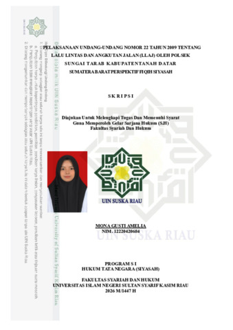 MONA GUSTI AMELIA, - (2026) PELAKSANAAN UNDANG-UNDANG NOMOR 22 TAHUN 2009 TENTANG LALU LINTAS DAN ANGKUTAN JALAN (LLAJ) OLEH POLSEK SUNGAI TARAB KABUPATENTANAH DATAR SUMATERA BARAT PERSPEKTIF FIQIH SIYASAH. Skripsi thesis, Universitas Islam Negeri Sultan Syarif Kasim Riau.