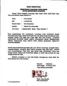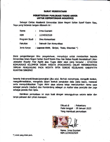SURAT PERNYATAAN - IRMA GUSRIANI ILMU KOMUNIKASI.pdf - Published Version Download (649kB) | Preview |