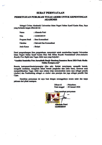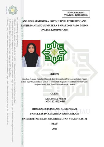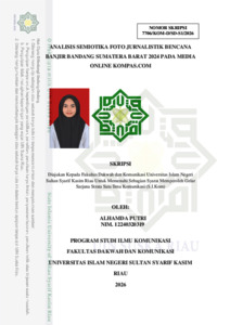 ALHAMDA PUTRI, - (2026) ANALISIS SEMIOTIKA FOTO JURNALISTIK BENCANA BANJIR BANDANG SUMATERA BARAT 2024 PADA MEDIA ONLINE KOMPAS.COM SKRIPSI. Skripsi thesis, UNIVERSITAS ISLAM NEGERI SULTAN SYARIF KASIM RIAU.