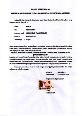 ADELIA, - (2026) FILOSOFI WABI-SABI DALAM BUDDHISME ZEN DAN TASAWUF AKHLAKI DALAM ISLAM (STUDI KOMPARATIF). Skripsi thesis, Universitas Islam Negeri Sultan Syarif Kasim Riau.
