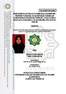 DEWI CAHYARANI, - (2026) IMPLEMENTASI NILAI TAUHID DALAM PRINSIP-PRINSIP TABLIGH: ANALISIS BAB FADHILAH TABLIGH DALAM KITAB FADHAIL A’MAL KARYA MAULANA ZAKARIYA AL-KANDAHLAWI (1315 H-1402 H). Skripsi thesis, Universitas Islam Negeri Sultan Syarif Kasim Riau.