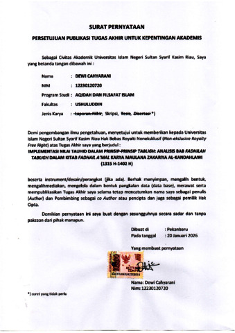 SURAT PUBLIKASI - DEWI CAHYARANI Aqidah dan Filsafat Islam S1.pdf - Published Version