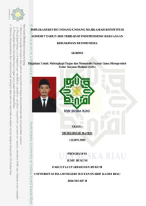 ABU SAMAH (2026) IMPLIKASI REVISI UNDANG-UNDANG MAHKAMAH KONSTITUSI NOMOR 7 TAHUN 2020 TERHADAP INDEPENDENSI KEKUASAAN KEHAKIMAN DI INDONESIA. Skripsi thesis, Universitas Islam Negeri Sultan Syarif Kasim.