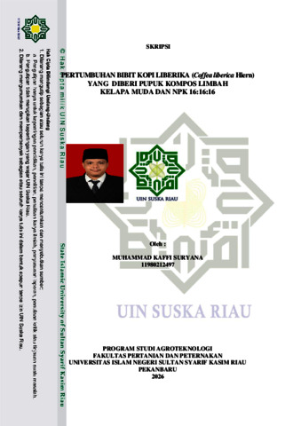 MUHAMMAD KAFFI SURYANA, - (2026) PERTUMBUHAN BIBIT KOPI LIBERIKA (Coffea liberica Hiern) YANG DIBERI PUPUK KOMPOS LIMBAH KELAPA MUDA DAN NPK 16:16:16. Skripsi thesis, UNIVERSITAS ISLAM NEGERI SULTAN SYARIF KASIM RIAU.