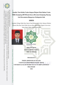 KURNIA RIZKI ANANDA, - (2026) ANALISIS TATA KELOLA USAHA SIMPAN PINJAM PADA BADAN USAHA MILIK KAMPUNG (BUMKAM) KARYA BERSAMA KAMPUNG DAYANG SURI KECAMATAN BUNGARAYA KABUPATEN SIAK. Skripsi thesis, UNIVERSITAS ISLAM NEGERI SULTAN SYARIF KASIM RIAU.