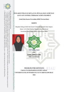 LINDA AMELIA SARI, - (2026) PENGARUH TEKANAN KETAATAN, PENGALAMAN AUDIT DAN LOCUS OF CONTROL TERHADAP AUDIT JUDGMENT (STUDI PADA KANTOR PERWAKILAN BPKP PROVINSI RIAU). Skripsi thesis, Universitas Islam Negeri Sultan Syarif Kasim Riau.