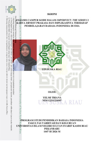 x ABSTRAK Yelmi Triana, (2025): Analisis Campur Kode Dalam Imperfect: The Series 2 Karya Ernset Prakasa Dan Implikasinya Terhadap Pembelajaran Bahasa Indonesia Di SMA Penelitian ini menganalisis fenomena campur kode dalam Imperfect: The Series 2 karya Ernest Prakasa dan implikasinya terhadap pembelajaran Bahasa Indonesia di SMA. Penelitian ini bertujuan untuk menganalisis bentuk campur kode dan melihat implikasinya terhadap pembelajaran Bahasa Indonesia di tingkat SMA. Penelitian menggunakan pendekatan kualitatif dengan metode library research melalui analisis dialog tokoh. Hasil menunjukkan terdapat 66 data campur kode dalam bentuk kata, frasa, dan klausa, baik internal maupun eksternal. Hasil penelitian ini menunjukkan bahwa fenomena campur kode dapat dijadikan acuan dalam implementasi pembelajaran Bahasa Indonesia, khususnya pada capaian pembelajaran fase F Kurikulum Merdeka. Pemanfaatan media drama seperti Imperfect: The Series 2 diharapkan dapat meningkatkan kemampuan berbahasa, keterampilan literasi, pemahaman fungsi bahasa dalam konteks sosial, serta mengapresiasi keberagaman bahasa dan budaya di sekitar peserta didik. Kata Kunci: campur kode, imperfect: the series 2, pembelajaran bahasa Indonesia