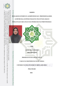 AULIA DIAN PERTIWI, - (2026) PENGARUH EXPERIENCE, KOMPETENSI, DAN PROFESIONALISME AUDITOR PADA BADAN PENGAWASAN KEUANGAN DAN PEMBANGUNAN PROVINSI RIAU. Skripsi thesis, UNIVERSITAS ISLAM NEGERI SULTAN SYARIF KASIM RIAU.
