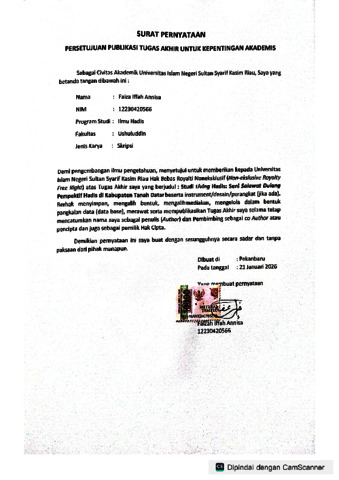 Surat Peryataan Persetujuan - FAIZAH IFFAH ANNISA Ilmu Hadis S1 A.pdf - Published Version