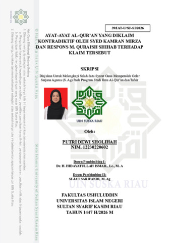 PUTRI DEWI SHOLIHAH, - (2026) AYAT-AYAT AL-QUR’AN YANG DIKLAIM KONTRADIKTIF OLEH SYED KAMRAN MIRZA DAN RESPONS M. QURAISH SHIHAB TERHADAP KLAIM TERSEBUT. Skripsi thesis, Universitas Islam Negeri Sultan Syarif Kasim Riau.