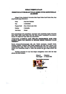 PERNYATAAN PUBLIKASI - PUTRI DEWI SHOLIHAH Ilmu Al Qur'an dan Tafsir S1.pdf - Published Version Download (401kB) | Preview |