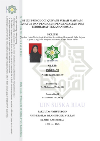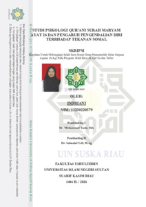 INDRIANI, - (2026) STUDI PSIKOLOGI QUR’ANI SURAH MARYAM AYAT 26 DAN PENGARUH PENGENDALIAN DIRI TERRHADAP TEKANAN SOSIAL. Skripsi thesis, Universitas Islam Negeri Sultan Syarif Kasim Riau.
