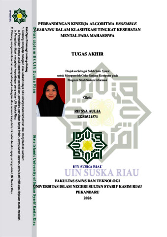 RIFSYA AULIA, - (2026) PERBANDINGAN KINERJA ALGORITMA ENSEMBLE LEARNING DALAM KLASIFIKASI TINGKAT KESEHATAN MENTAL PADA MAHASISWA. Skripsi thesis, UNIVERSITAS ISLAM NEGERI SULTAN SYARIF KASIM RIAU.