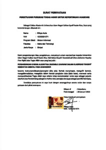 Surat Pernyataan Serah Terima Karya - RIFSYA AULIA SISTEM INFORMASI.pdf - Published Version