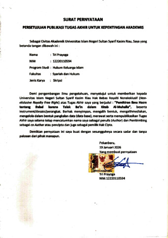 TRI PRAYOGA (2026) PEMIKIRAN IBNU HAZM TENTANG IHDAD KARENA TALAK BA’IN DALAM KITAB AL-MUHALLA. Skripsi thesis, Universitas Islam Negeri Sultan Syarif Kasim.
