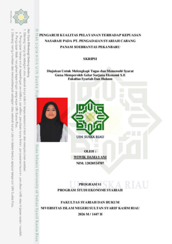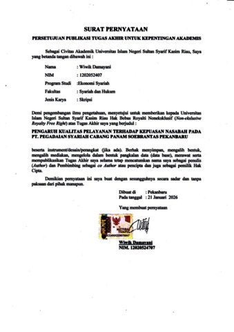 WIWIK DAMAYANI (2026) PENGARUH KUALITAS PELAYANAN TERHADAP KEPUASAN NASABAH PADA PT. PENGADAIAN SYARIAH CABANG PANAM SOEBRANTAS PEKANBARU. Skripsi thesis, Universitas Islam Negeri Sultan Syarif Kasim.