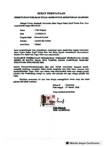 PERNYATAAN PUBLIKASI - TITIK HIDAYAH Ekonomi Syariah S1.pdf - Published Version