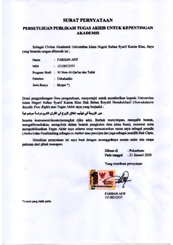 SURAT PUBLIKASI - FARHAN AFIF Ilmu Alquran dan Tafsir S1.pdf - Published Version