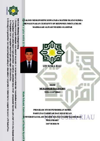 MUHAMMAD HASANUDIN (2026) ANALISIS MISKONSEPSI SISWA PADA MATERI IKATAN KIMIA MENGGUNAKAN CERTAINTY OF RESPONSE INDEX (CRI) DI MADRASAH ALIYAH NEGERI 4 KAMPAR. Skripsi thesis, UNIVERSITAS ISLAM NEGERI SULTAN SYARIF KASIM RIAU.