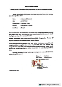 | Divisions: | Fakultas Tarbiyah dan Keguruan > Pendidikan Kimia | ||||||||
