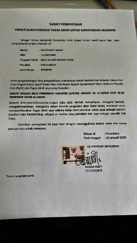 NUR SYAMSI ANJANI, - (2026) EMPATI SEBAGAI NILAI PENDIDIKAN KARAKTER QUR’ANI: ANALISIS QS. AL-QASAS AYAT 23-28 PERSPEKTIF TAFSIR AL-AZHAR. Skripsi thesis, Universitas Islam Negeri Sultan Syarif Kasim Riau.