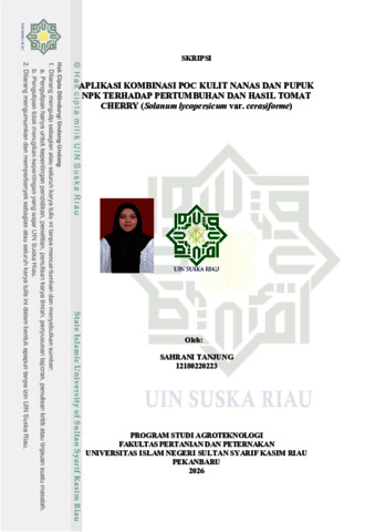 UNIVERSITAS ISLAM RIAU (2026) APLIKASI KOMBINASI POC KULIT NANAS DAN PUPUK NPK TERHADAP PERTUMBUHAN DAN HASIL TOMAT CHERRY (Solanum lycopersicum var. cerasiforme). PERTANIAN DAN PETERNAKAN.