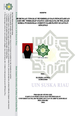 ELZIQRA ANNISA, - (2026) HUBUNGAN TINGKAT PENDIDIKAN DAN PENGETAHUAN GIZI IBU TERHADAP STATUS GIZI BALITA DI WILAYAH KERJA PUSKESMAS CERENTI KABUPATEN KUANTAN SINGINGI. Skripsi thesis, UNIVERSITAS ISLAM NEGERI SULTAN SYARIF KASIM RIAU.