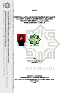MAUSYIMATUL AFIFAH, - (2026) HUBUNGAN ASUPAN KARBOHIDRAT DENGAN KADAR GLUKOSA DARAH PADA PENDERITA DIABETES MELITUS TIPE 2 DI WILAYAH KERJA PUSKESMAS UPT MANDAH. Skripsi thesis, UNIVERSITAS ISLAM NEGERI SULTAN SYARIF KASIM RIAU.