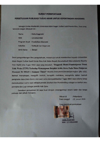 DELIA ANGGRAINI, - (2026) PENGARUH MODEL PEMBELAJARAN THINK TALK WRITE (TTW) TERHADAP KEMAMPUAN BERPIKIR KRITIS SISWA PADA MATA PELAJARAN EKONOMI DI SMAN 1 KAMPAR TIMUR. Skripsi thesis, Universitas Islam Negeri Sultan Syarif Kasim Riau.