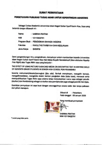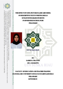 SABRINA PRATIWI, - (2026) THE EFFECT OF USING PICTURE FLASHCARD MEDIA ON DESCRIPTIVE TEXT IN WRITING SKILLS OF ELEVENT GRADE STUDENTS IN SENIOR HIGH SCHOOL PGRI PEKANBARU. Skripsi thesis, Universitas Islam Negeri Sultan Syarif Kasim Riau.