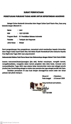 LISNI, - (2026) DEKONSTRUKSI MAKNA PUISI FIERSA BESARI DAN RELEVANSINYA DENGAN MATERI TEKS PUISI DI SMA. Skripsi thesis, UNIVERSITAS ISLAM NEGERI SULTAN SYARIF KASIM RIAU.
