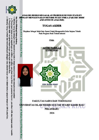 ASTRI NABILLA, - (2026) ANALISIS RISIKO KEGAGALAN PRODUKSI DI UKM STANLEY DENGAN MENGGUNAKAN METODE FUZZY FMEA (FAILURE MODE AND EFFECTS ANALYSIS). Skripsi thesis, UNIVERSITAS ISLAM NEGERI SULTAN SYARIF KASIM RIAU.