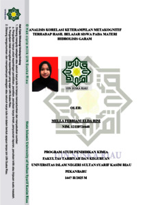 MELLA FEBRIANI ELDA RINI, - (2026) ANALISIS KORELASI KETERAMPILAN METAKOGNITIF TERHADAP HASIL BELAJAR SISWA PADA MATERI HIDROLISIS GARAM. Skripsi thesis, UNIVERSITAS ISLAM NEGERI SULTAN SYARIF KASIM RIAU.