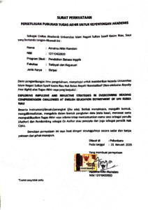| Divisions: | Fakultas Tarbiyah dan Keguruan > Pendidikan Bahasa Inggris | ||||||||