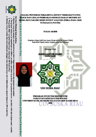 ANALISA PENYEBAB TERJADINYA DEFECT TERHADAP PAVING BLOCK DAN USULAN PERBAIKAN MENGGUNAKAN METODE SIX SIGMA DAN FAILURE MODE EFFECT ANALYSIS (FMEA) PADA UKM TUNAS JAYA PAVING SAKINA SAFITRI SYAHIS NIM. 12150220289 Tanggal Sidang: 24 Desember 2025 Program Studi Teknik Industri Fakultas Sains dan Teknologi Universitas Islam Negri Sultan Syarif Kasim Riau Jl. HR. Soebrantas KM. 15 No. 155 Pekanbaru ABSTRAK Industri infrastruktur di Indonesia, khususnya dalam pembangunan transportasi dan permukan jalan, menunjukkan pertumbuhan yang signifikan. Salah satunya memberikan dampak posistif dari pertumbuhan ini dengan meningkatnya kebutuhan akan paving block, dengan itu paving block harus memiliki kualitas yang saat baik. Namun dalam pelaksanaan operasional dalam sehari hari terdapat kecacatan pada produk paving block yaitu patah, puing, retak, basah dan tidak persisi. Dengan ini, tujuan dari penelitian adalah mengidentifikasi jenis kecacatan yang paling dominan agar dapat memberikan rekomendasi perbaikan sesegera mungkin berdasarkan tingkat kecacatan produk. Metode yang digunakan dalam menyelesaikan permasalahan tersebut adalah Six Sigma Dan Failure Mode Effect Analysis (FMEA) hingga mendapatkan hasil cacat yang paling dominan adalah patah 30,2%, retak 25,0% dan puing 20,3%. Berdasarkan 3 jenis kecacatan ini maka dilakukan tindakan perbaikan dan rekomendasi perbaikan menggunakan SOP berdasarkan prinsip Poka-Yoke Kata Kunci: Six Sigma, Failure Mode Effect Analysis FMEA, Paving Block