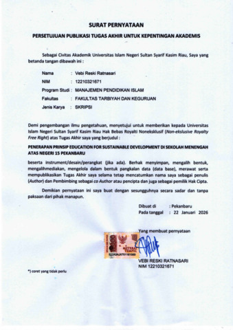 VEBI RESKI RATNASARI, - (2026) PENERAPAN PRINSIP EDUCATION FOR SUSTAINABLE DEVELOPMENT DI SEKOLAH MENENGAH ATAS 15 PEKANBARU. Skripsi thesis, UNIVERSITAS ISLAM NEGERI SULTAN SYARIF KASIM RIAU.
