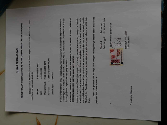 RIYANDA PRATAMA, - (2026) HUBUNGAN ANTARA ETOS KERJA DENGAN KINERJA GURU DI SMAN 1 BATU BERSURAT KECAMATAN XIII KOTO KAMPAR KABUPATEN KAMPAR. Skripsi thesis, UNIVERSITAS ISLAM NEGERI SULTAN SYARIF KASIM RIAU.