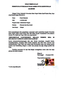 NURUL SALAMIAH, - (2026) IMPLEMENTASI E-GOVERNMENT MELALUI WEBSITE DESA DI KECAMATAN TAMBANG KABUPATEN KAMPAR. Skripsi thesis, UNIVERSITAS ISLAM NEGERI SULTAN SYARIF KASIM RIAU.