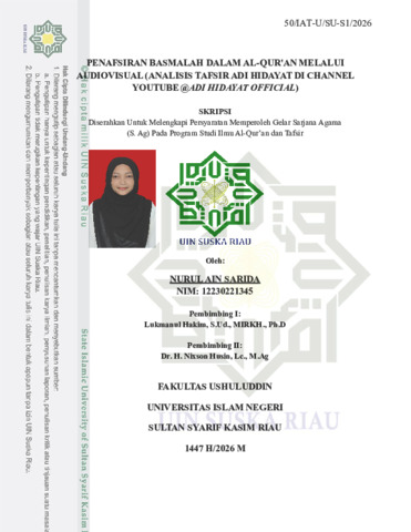 NURUL AIN SARIDA (2026) PENAFSIRAN BASMALAH DALAM AL-QUR'AN MELALUI AUDIOVISUAL (ANALISIS TAFSIR ADI HIDAYAT DI CHANNEL YOUTUBE @ADI HIDAYAT OFFICIAL). Skripsi thesis, UNIVERSITAS ISLAM NEGERI SULTAN SYARIF KASIM RIAU.