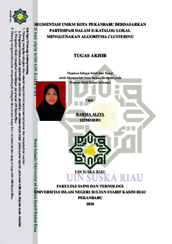 RAHMA ALIYA, - (2026) SEGMENTASI UMKM KOTA PEKANBARU BERDASARKAN PARTISIPASI DALAM E-KATALOG LOKAL MENGGUNAKAN ALGORITMA CLUSTERING. Skripsi thesis, Universitas Islam Negeri Sultan Syarif Kasim Riau.